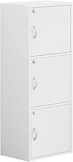 クロシオ 本棚 ホワイト 3段 幅40cm A4 書棚 扉 鍵付き 収納 木製 093312