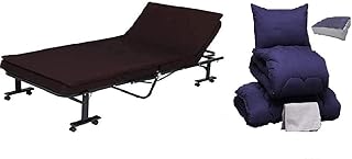 【すぐに使える寝具セット】アイリスオーヤマ ベッド 折りたたみベッド シングル 低反発 14段階リクライニング 完成品 ブラウン + 布団セット シングル 4点セットネイビー