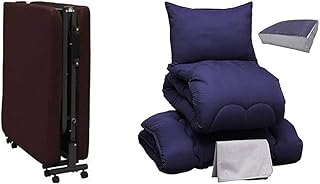 【すぐに使える寝具セット】アイリスオーヤマ ベッド 折りたたみベッド シングル 低反発 ハイタイプ 完成品 ブラウン + 布団セット シングル 4点セットネイビー