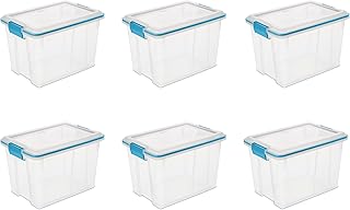 Sterilite 19324306 ガスケットボックス シースルー蓋とベース ブルーアクアリウムラッチとガスケット付き 20クォート 6個パック