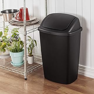 Sterilite 10689006 7.5ガロン スイングトップ くずかご ブラックの蓋とベース 6個パック