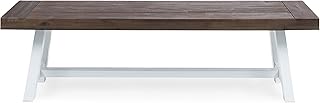 Cytheria Indoor Farmhouse Dark Brown Sandblast Finish Acacia Wood Dining Bench with White Rustic Metal Finish Frame 141[並行輸入]