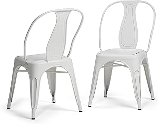 Simpli Home Merritt Industrial Metal Dining Arm Chair (Set of 2) in Distressed White, Fully Assembled 141[並行輸入]