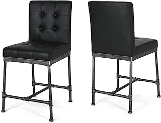 Christopher Knight Home Savannah Industrial Modern 24' Counter Stool with Faux Leather Backing and Metal Pipe Base (Set of 2), Black Finish 141[並行輸入]