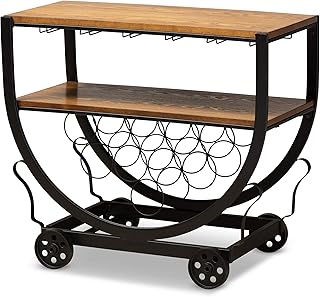 Baxton Studio Triesta Antiqued Vintage Industrial Metal & Wood Wheeled Wine Rack Cart 141[並行輸入]