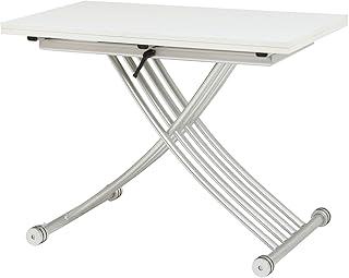 リフティングテーブル エクステンションテーブル ローテーブル ダイニングテーブル 完成品 長方形 昇降式 無断階 天板広さ2倍 キャスター付き おしゃれ 北欧 (ホワイト, 幅114cm)