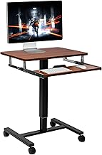 Lovinouse オフィスワークテーブル ガス圧 昇降デスク スタンディングデスク 無段階高さ調節 幅65×奥行48×高さ70~110cm 引き出し/キャスター付き 簡単組立 省スペース(ウォルナット+ブラック)