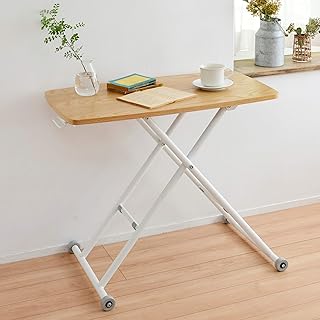 Probasto 昇降式テーブル スムーズ昇降 無段階高さ調節 幅90×奥行60×高さ11~71cm 完成品 キャスター付き ダイニングテーブル ローテーブル 作業台 食卓 リビングテーブル ナチュラル