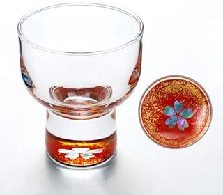 高岡漆器螺鈿硝子杯金桜・朱富山県伝統工芸品Takaoka-shikki raden glass sake cup sakazuki