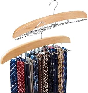 EZOWare 2個入り ネクタイハンガー 木製 24本掛け ベルトハンガー ベルト ネクタイ スカーフ キャミソール ハンガー すべり落ち防止 クロゼット収納
