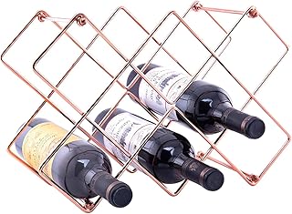 H&W 卓上ワインラック (ボトル10本ローズゴールドワインラックホルダー) 自立式カウンタートップワインラック ワインボトル収納 幾何学デザイン ワインセラー バーキャビネット用