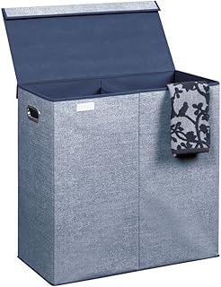 mDesign 特大分割ランドリーバスケット 取り外し可能な蓋 持ち手付き 持ち運び可能 折りたたみ可能 コンパクト収納 ネイビー