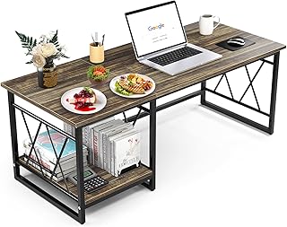 パソコンデスク オフィスチェア NDL-001 木製デスク L型 書斎デスク 学習机 PCデスク 収納付き 木製 勉強机 収納付き 学習デスク オフィスデスク ラック付き (ダークブラウン×ブラック)