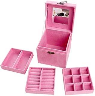 初めての戦術的な2層リントジュエリーボックスオーガナイザーディスプレイストレージケース、ロック付き。 4.72" x 4.72" x 4.72" ピンク
