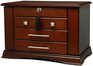 Arolly 大型モダンダークエスプレッソ木製仕上げネックレス ジュエリーボックス チェストオーガナイザー ロック付き 寸法 18 x 11 x 12.2