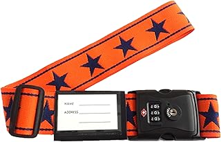 TSA ロック付き スーツケース ベルト (ネーム タグ 付き) ビッグスター柄 オレンジ×紺