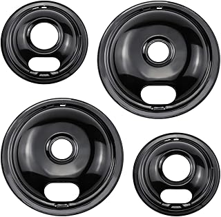 Cenipar バーナー ドリップパン W10290350 8インチ (2パック) & W10290353 6インチ (2パック) ドリップパン ブラックスタイル ポーセリン ドリップパン Whirlpool Electrulox Frlgidalre 電気ストーブ&表面バーナー用