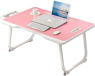 SUKIZUKI 折りたたみテーブル 座卓 ローテーブル PCデスク 軽量 アウトドア 溝付き 表面大容量 多機能テーブル ベッドテーブル 耐荷重50kg 60*42*28cm 引き出し付き ピンク+ホワイト