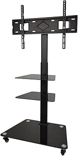 WHESWELL テレビスタンド キャスター付き 26-55インチ tvスタンド テレビ台 ハイタイプ 耐荷重25kg 移動式 棚板付き 高さ調整可能 壁寄せテレビスタンド リビング用 会議用 事務用 展示用 業務用 ブラック AVアクセサリ 日本語説明書付き (LCD/LED/PLASMA/OLED)対応