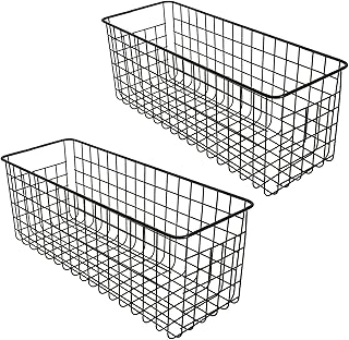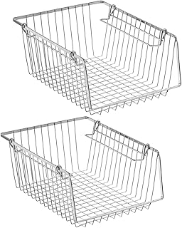 blitzlabs ワイヤーバスケット 積み重ね可能 メタルバスケット 大型バスケット 家庭用ワイヤーバスケット ハンドル付き 収納整理 キッチン パントリー バスルーム キャビネット 寝室 2個セット