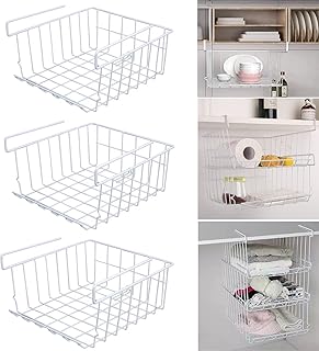 HOGAWAY 吊り下げ棚 3個セット 収納バスケット キッチン収納ラック 荷重5kg オフィス/バスルーム用 積み重ね使用可能 ホワイト 40*25.5*14cm
