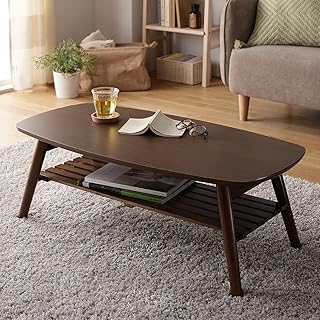ぼん家具 センターテーブル 折りたたみ 木製 リビング ダイニング テーブル 棚付き ウォールナット