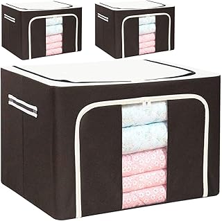 Wellz 3個セット 衣類収納ケース 積み重ねできる 収納ボックス 折りたたみ 72L (50×34×40cm) 透明窓付き ワイヤー入り (ブラウン)