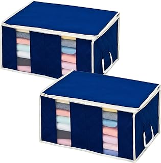 Chaudedoux 収納ケース 衣類収納ケース 収納ボックス スペースを節約 耐久性抜群 ワイヤー入り 取っ手付き 透明窓付き 大容量 洋服収納 麻生地 内側撥水加工 防塵(2個セット 幅50×奥行40×高32cm)