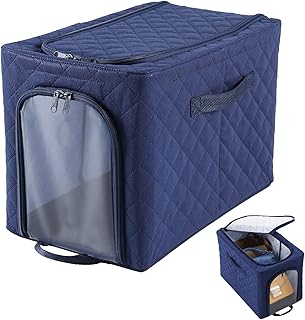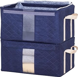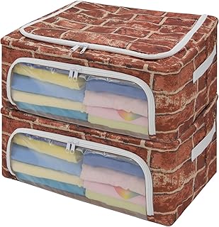 DUOFIRE 収納ケース 衣類 収納ボックス 布団収納ケース 衣類収納 大容量 洋服収納 折りたたみ ワイヤー入り 取っ手付き 透明窓付き 麻生地 内側撥水加工 防塵(40x30x20cm 2個セット)