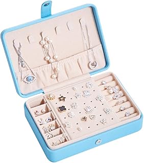 小型ジュエリーボックス-ミニジュエリーボックス-レディース旅行ジュエリーケース、ポータブル小型ジュエリーオーガナイザー リング/イヤリング/ネックレス/女の子/女性向けギフト (ブルー)