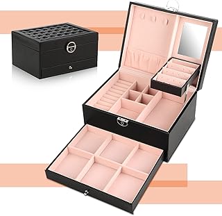 ジュエリーオーガナイザー ProttyLife ジュエリーボックス 女性用ジュエリーボックスオーガナイザー イヤリングオーガナイザー 大きなジュエリーボックス/ネックレスホルダーオーガナイザー 2層PUレザー ジュエリーディスプレイストレージケース ロック付き (ブラック)