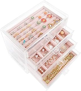 ProttyLife アクリルジュエリーボックス 引き出し4つ付き 大型アクリルジュエリーボックス レディース クリアジュエリーオーガナイザー ベルベットイヤリングボックス イヤリング ネックレス リング ブレスレット クリアジュエリーディスプレイ収納ケース (ベージュ)