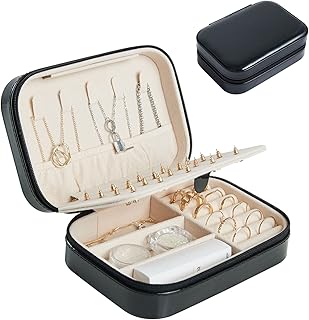 Shemboli 小型ジュエリーボックス、PUレザーポータブルトラベルジュエリーオーガナイザー、2層ジュエリーディスプレイストレージオーガナイザーケース、リング、イヤリング、ネックレス、ブレスレット、ギフトに ブラック