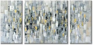 抽象絵画キャンバスウォールアート モダンハンドペイントテクスチャードゴールド箔装飾絵画アートワーク 壁用 (32インチ x 16インチ x 2パネル+ 32インチ x 32インチ x 1パネル)