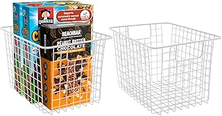 Sorbus メタルワイヤーバスケット ストレージビン オーガナイザー 食品パントリー キッチン ランドリールーム バスケットオーガナイザー 自宅 バスルーム クローゼット整理 鉄金属 (2個パック ホワイト)