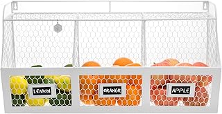 Lサイズ カントリー 素朴な金属ワイヤー 壁掛け フルーツバスケット ストレージビン 黒板ラベル付き ホワイト