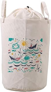 Zhigua ランドリーかご 大容量 洗濯かご ランドリーバスケット 防水コーティング 折り畳み式 省スペース コットン生地 巾着袋 取っ手付き おしゃれ 可愛い 魚柄 収納袋 おもちゃ箱 洗濯物入れ お部屋片付け
