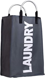 IHOMAGIC ランドリーバスケット ランドリーボックス 洗濯ボックス 折りたたみ ランドリーかご 洗濯物入れ 洗濯バッグ 収納バッグ 取っ手付き 防水軽量 持ち運び可能 洗濯バスケット雑貨収納 オックスフォード布 長さ33cm×幅 23cm×高さ53cm、 容量40L(ダークグレー)