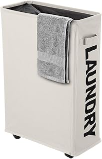 IHOMAGIC 車輪付きの洗濯物バスケット ランドリーバスケット ランドリーかご 洗濯ボックス 容量40L洗濯かご 折り畳み 防水 収納ボックス 収納バッグ 袋 防塵網 おしゃれ 取っ手付き オックスフォード布 ストレージバスケット衣料品 玩具39cm×18.5幅 cm×高さ58cm (ベージュ)