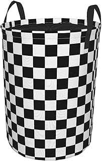 Mjhnois 黒と白の市松模様のストライプ ランドリーバスケット ランドリーかご 引きひも付き 収納 雑貨整理 大容量 折りたたみ 防水 おしゃれ 取っ手付き 収納ボックス ランドリーバッグ