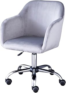オフィスチェア デスクチェア 肘付き キャスター付き ホームオフィスチェア 昇降機能付き ベルベット メイクアップチェア 厚手座面 椅子 おしゃれ ワークチェア 在宅勤務 テレワーク対応 組立簡単 (グレー)